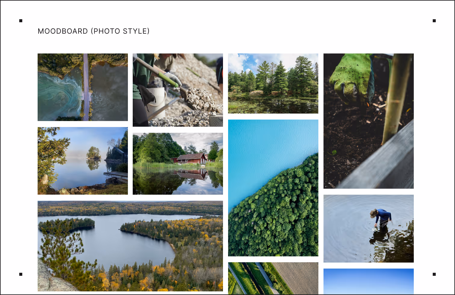 Early moodboards explored visual territories such as cartography, field ecology, digital dashboards, and scientific publishing. We looked at aerial imagery, topographic lines, GIS interfaces, and social media formats to balance clarity and authority with warmth and approachability. This phase helped clarify FieldDoc’s visual voice and set the foundation for the design direction.