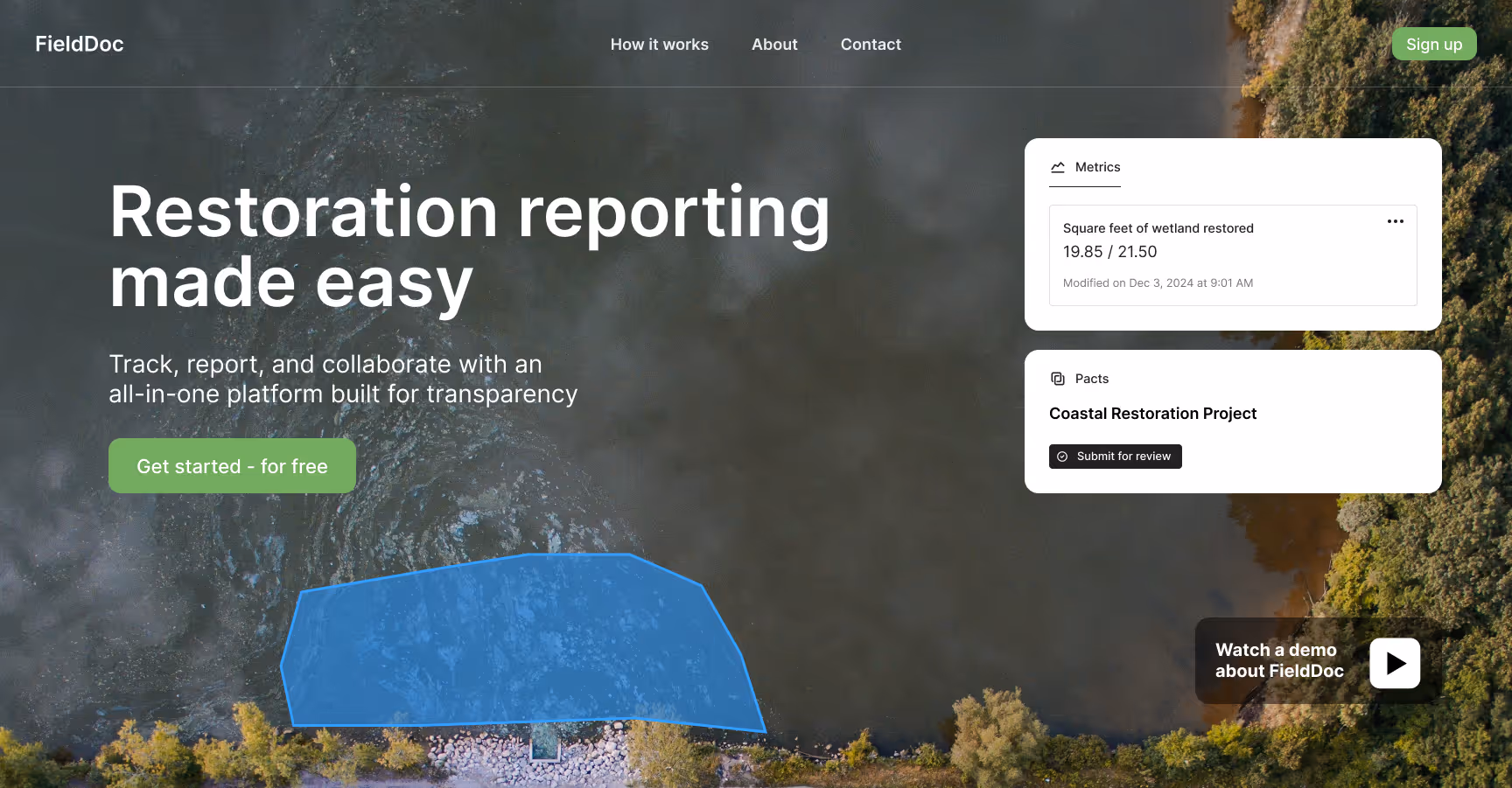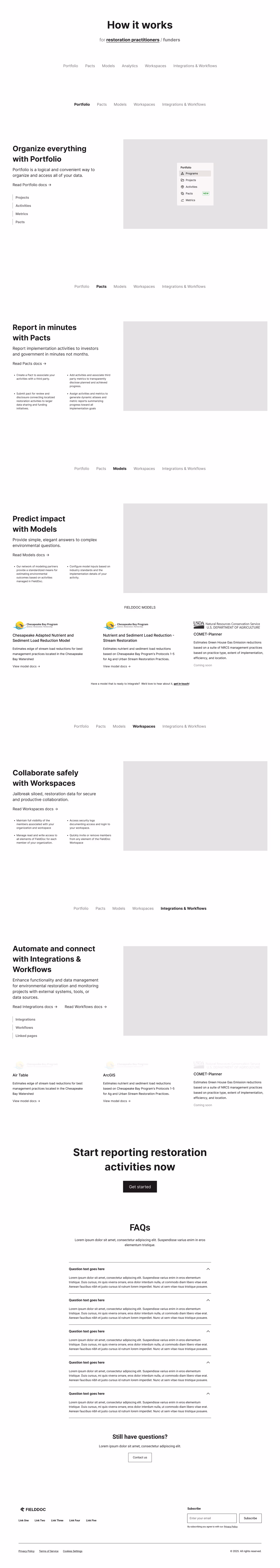 The site now serves as the primary entry point for potential collaborators and funders interested in using FieldDoc.
