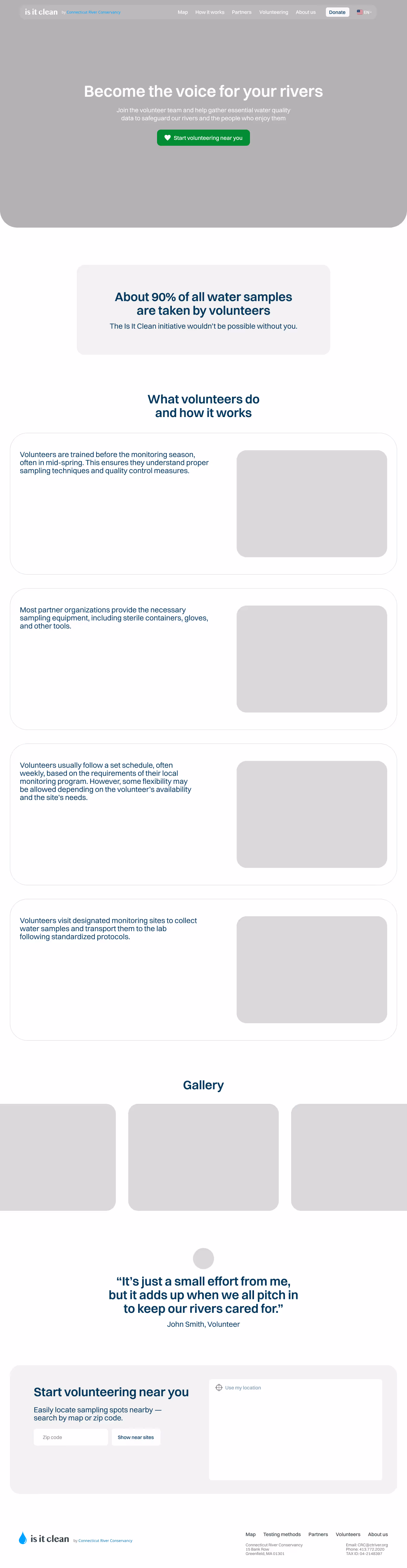 - Informational pages like “How it Works,” "About," “Volunteering,” and “Partners”.