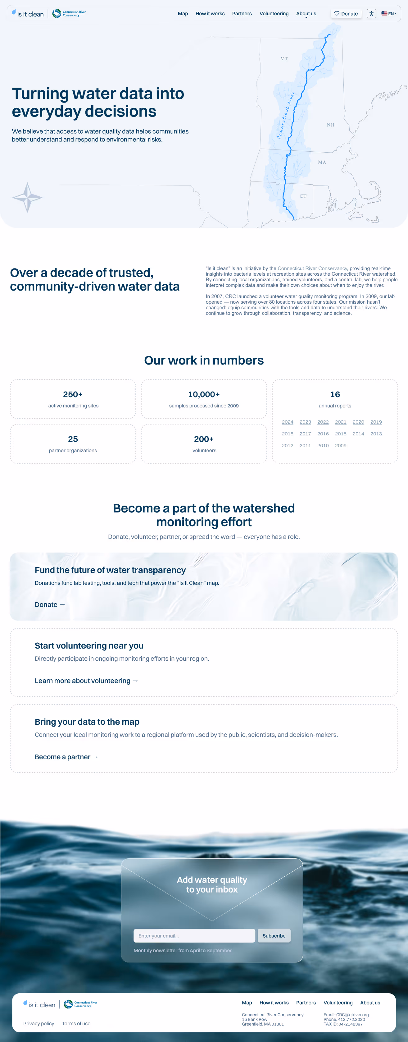 The website is now the primary water quality resource for thousands of residents and visitors in the Northeast. It’s also a foundational platform CRC can build on for future programs.